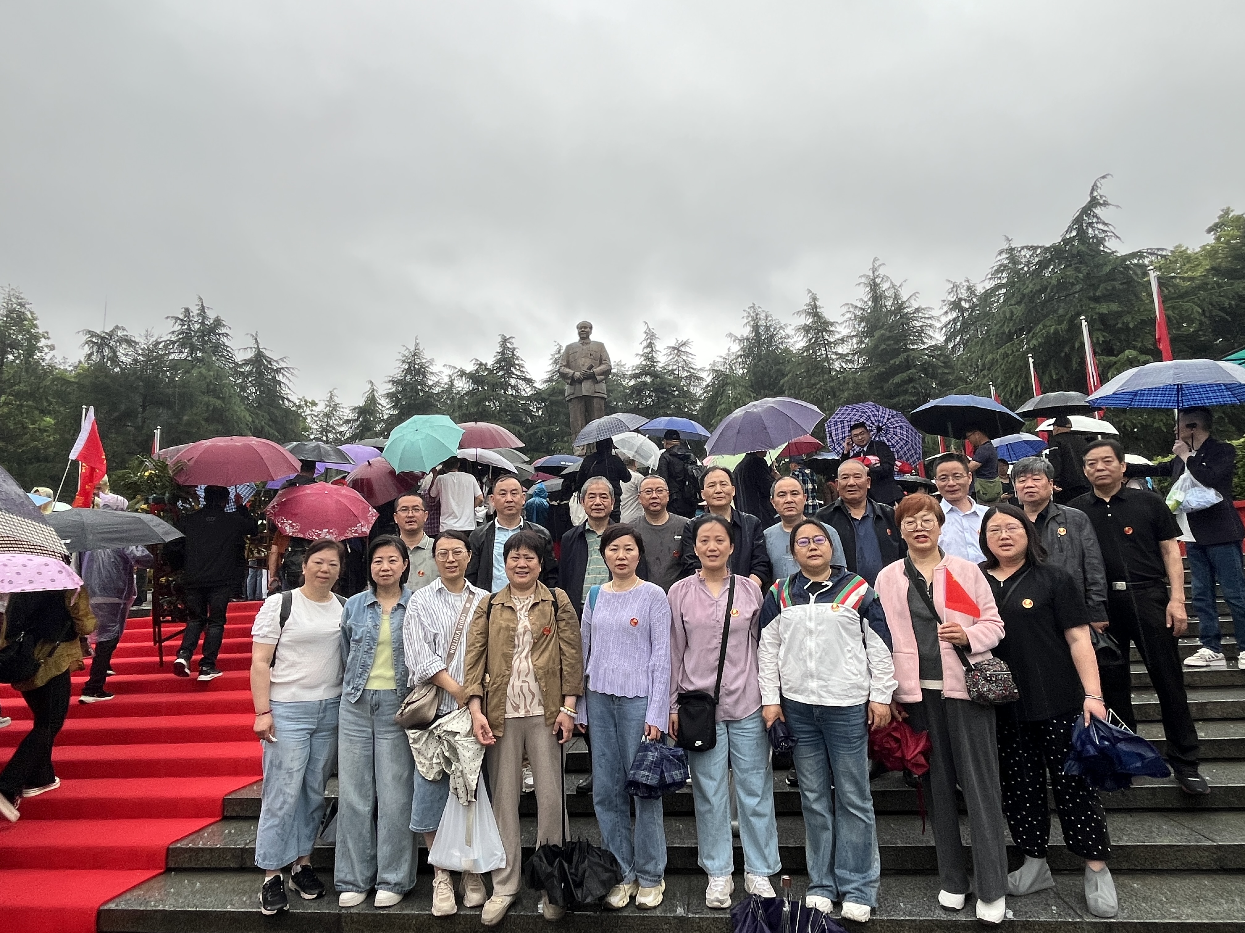 次日,盡管大雨傾盆,卻澆不滅黨員們的熱情。在韶山毛澤東銅像廣場,全體黨員莊嚴肅立,向毛澤東銅像敬獻花籃,深深三鞠躬,表達對偉人的無限崇敬與追思。隨后,大家參觀了毛澤東故居。這座始建于1878年的土木結(jié)構(gòu)農(nóng)舍,是毛澤東誕生和度過少年時光的地方 ,屋內(nèi)陳列的舊物,無聲訴說著偉人的成長經(jīng)歷,激勵著黨員們不忘初心、艱苦奮斗。滴水洞曾是毛澤東回鄉(xiāng)居住之所,這里靜謐清幽,黨員們在此感受偉人的家國情懷。